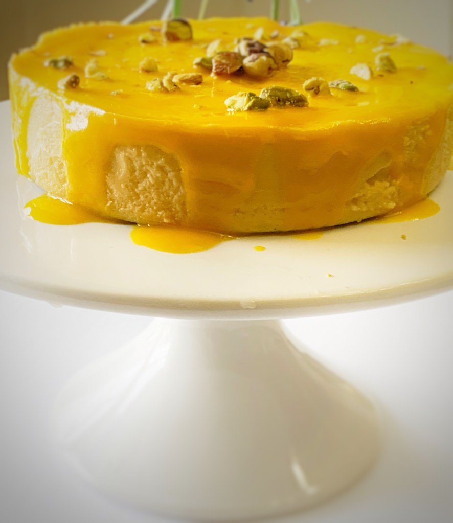 - Glaze with 2-3 tablespoon of mango puree right before serving.